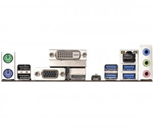 Zezadu má počítač konektory 5x USB 3.0 (4x typ A, 1x typ C), 2x USB 2.0, 2x PS/2, 1x Gbit síť, Jack výstupy pro až 5.1 reproduktory, výstupy integrované grafiky (DVI, HDMI, D-SUB).