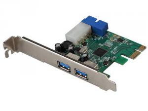 Rozšiřující karta vyvádí dva USB 3.0 konektory do 3,5" pozice na čelo skříně a dva USB 3.0 konektory dozadu skříně.