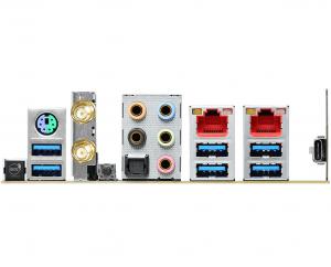 Zezadu má počítač konektory 1x USB 3.2 (typ C), 2x USB 3.1 (typ A), 4x USB 3.0 (typ A), 1x 10Gbit síť, 1x 2,5Gbit síť, 1x PS/2, optický výstup a Jack výstupy pro až 7.1 reproduktory.