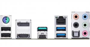 Zezadu má počítač konektory 1x USB 3.2/20Gbps (typ C), 1x USB 3.1/10Gbps, 2x USB 3.0/5Gbps, 2x USB 2.0, 1x PS/2, 1x 2,5Gbit síť, optický výstup a Jack konektory pro až 7.1 reproduktory, výstup integrované grafiky (HDMI, DisplayPort).