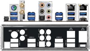 Zezadu má počítač konektory 2x USB 3.1 (1x typ A, 1x typ C), 8x USB 3.0, 2x Gbit síť, 1x PS/2, optický výstup a Jack výstupy pro až 7.1 reproduktory.