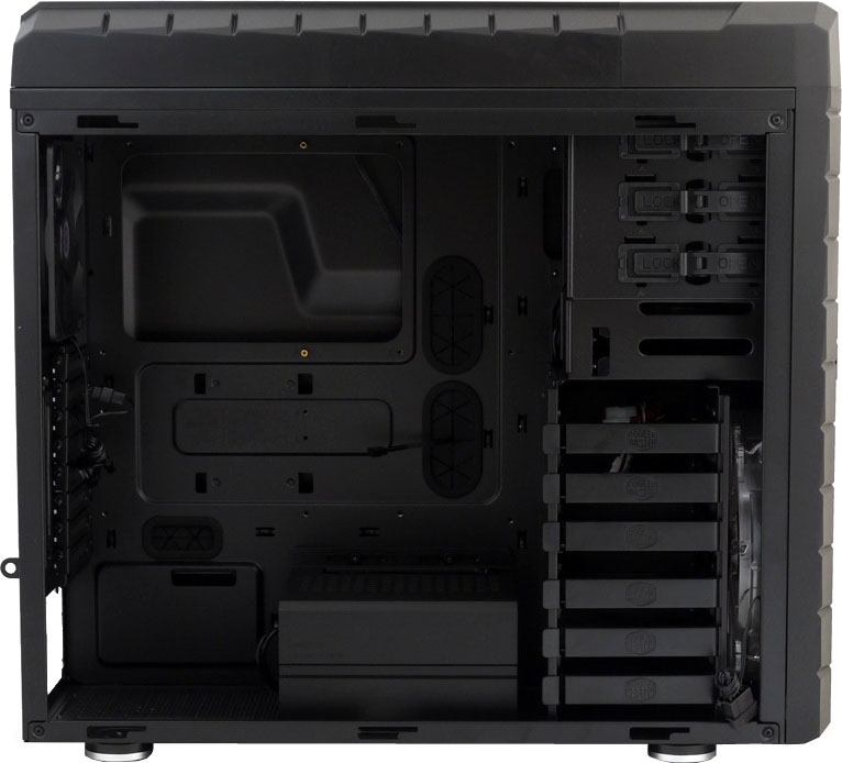 Skříň má průhlednou levou bočnici. Má výborné možnosti chlazení. Dodává se s jedním 140mm a dvěma 200mm ventilátory pro velký průtok vzduchu skříní. Čelní ventilátor má vypínatelné podsvícení. Na čelním panelu jsou vyvedeny 2 konektory USB 3.0, 2 konektory USB 2.0 a standardní audio konektory (sluchátka a mikrofon).