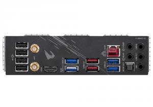 Zezadu má počítač konektory 2x USB 3.1, 4x USB 3.0, 4x USB 2.0, 1x 2,5Gbit síť, optický výstup a Jack konektory pro až 7.1 reproduktory, výstup integrované grafiky (HDMI).