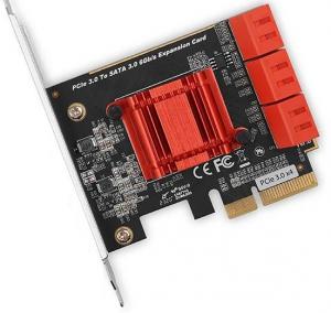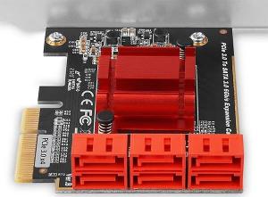 Rozšiřující karta přidává šest SATA 6G konektorů.