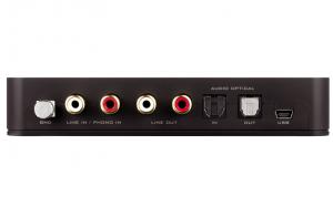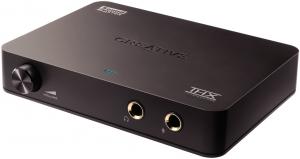 Kvalitní externí 2kanálová zvuková karta pro 2.0 nebo 2.1 reproduktory, která se k počítači připojuje přes USB. Karta nese 6,3mm jack konektor pro sluchátka a pro mikrofon. Alternativně je možné stereo vstupy a výstupy připojit pomocí Cinchů nebo optikou.